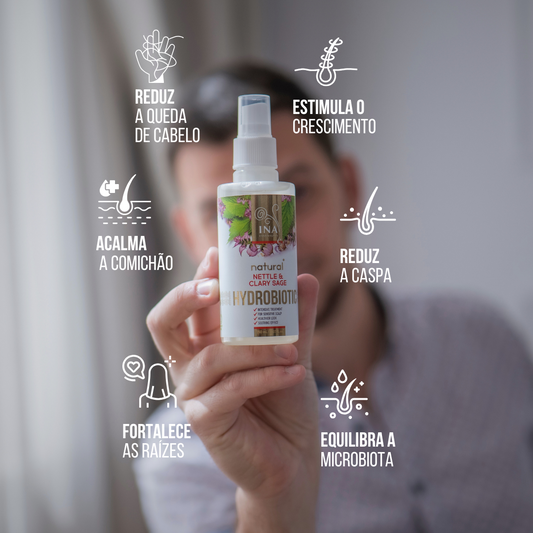 Com a utilização regular da nossa Água de Sálvia Orgânica desfrutará a longo prazo da melhoria geral do estado de todo o couro cabeludo. As vitaminas e minerais da Água de Sálvia Orgânica da InaEssentials contribuem ativamente para suavizar o couro cabeludo. Verá por si mesmo que a comichão diminuirá instantaneamente e a caspa será muito em breve apenas uma memória desagradável. A vermelhidão no couro cabeludo desaparecerá e notará num instante como os folículos capilares ficarão cada vez mais fortes, à medida que desfruta do seu cabelo bonito e saudável.