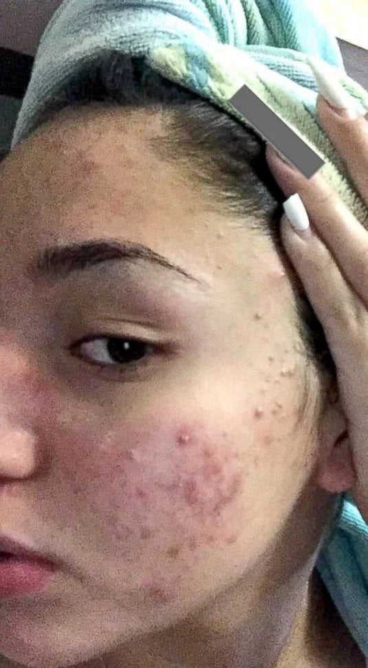 “Estava embaixo das minhas sobrancelhas, embaixo do meu nariz e ao redor da minha boca”, ela disse, referindo-se às áreas onde a acne é mais comum.