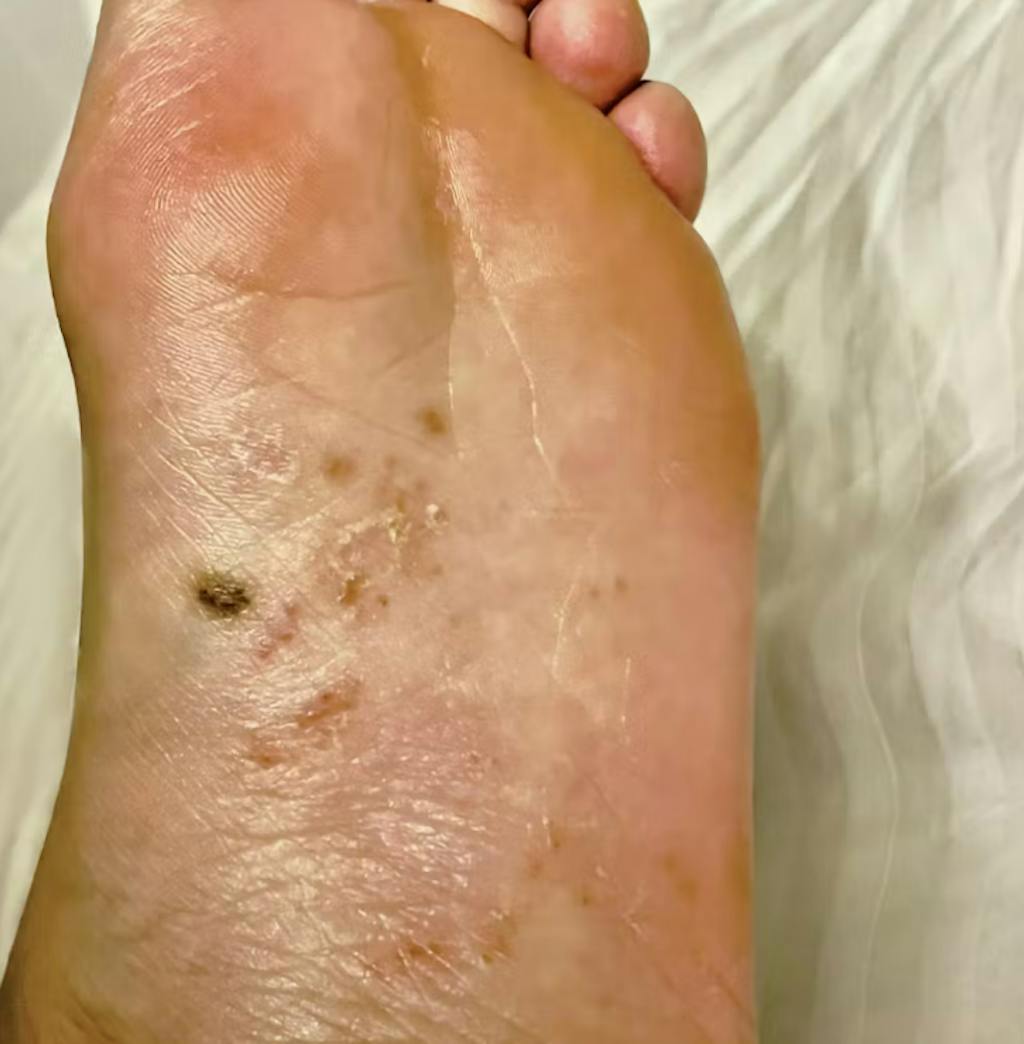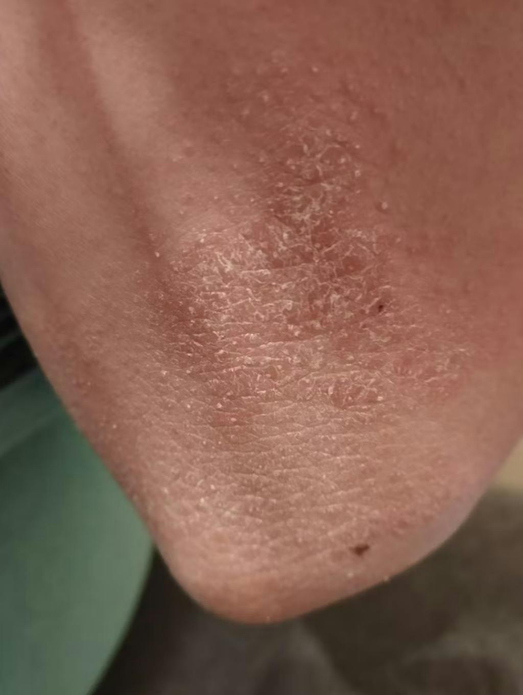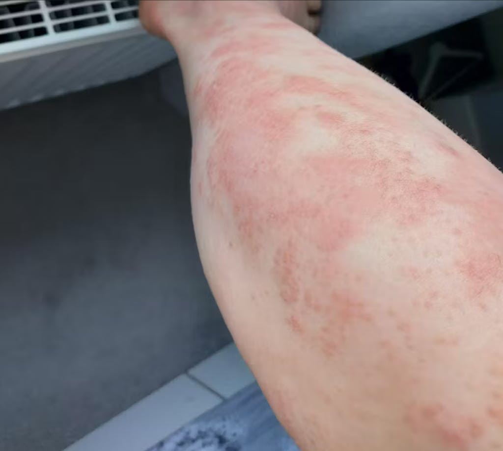 Não tenho a certeza do que era, mas parecia uma erupção cutânea com bolhas vermelhas, descamação e comichão intensa.