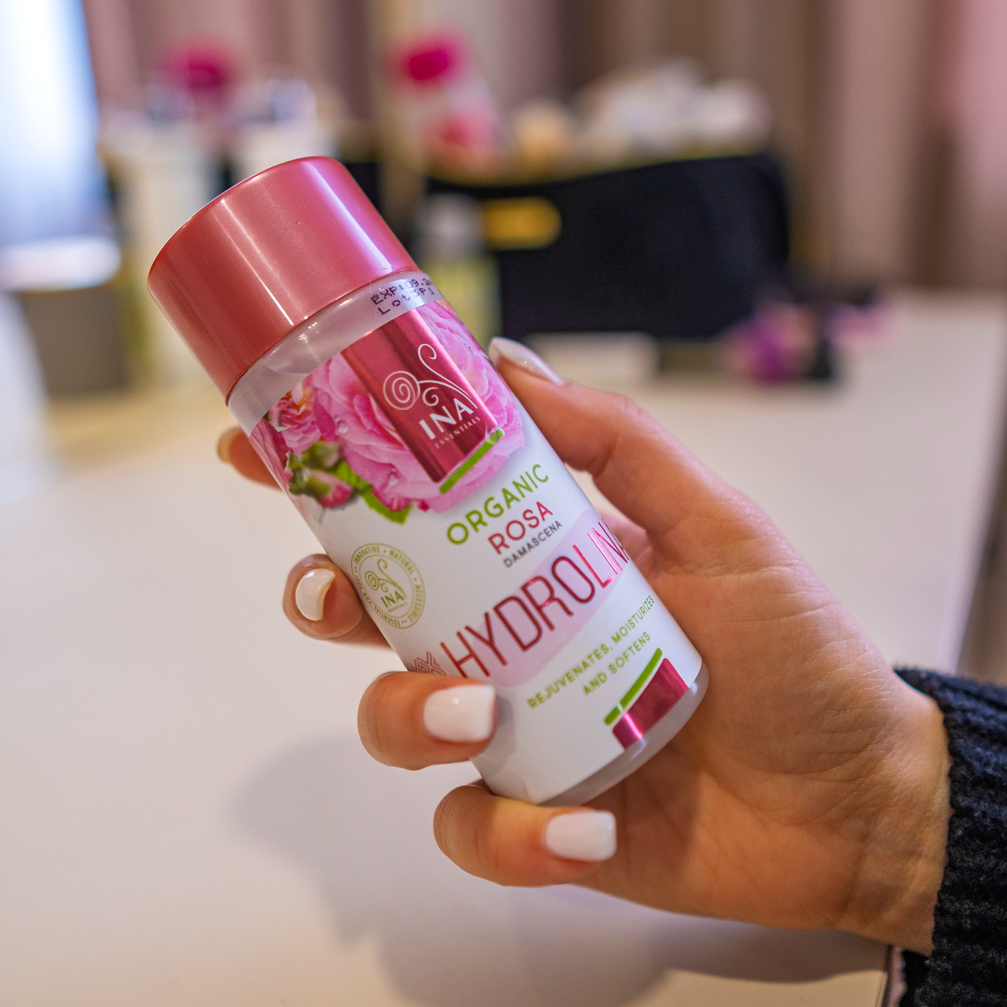 Com as suas elevadas propriedades de hidratação profunda, a Hydrolina de Rosas faz milagres à sua pele. Os componentes bioativos antioxidantes e anti-inflamatórios, tais como os flavonóides e os terpenóides, presentes na água de rosas, promovem a regeneração celular e combatem os danos oxidativos, que podem levar a sinais de envelhecimento como rugas e linhas finas. Estes elementos mantêm a sua pele equilibrada e radiante. A Hydrolina de Rosas hidrata a pele em profundidade, evitando a desidratação e deixando-a com uma tez brilhante e jovem.