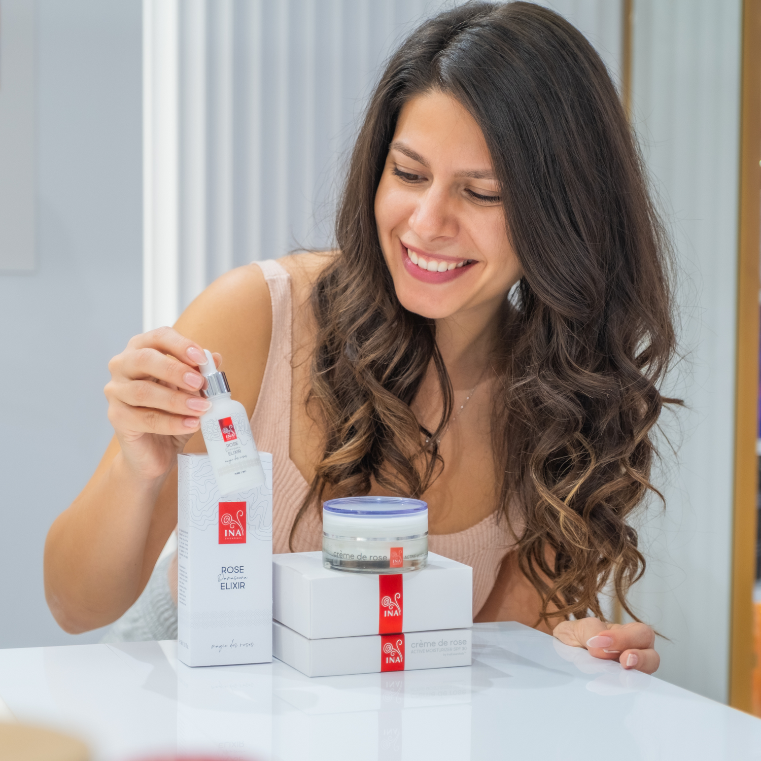 Deixe o aroma floral, doce e luxuoso do hidratante Ativo InaEssentials levá-lo aos nossos intermináveis jardins de rosas no coração da Bulgária, enquanto cuida de si e da sua pele bonita e brilhante. Permita que equilibre o seu corpo e mente. Apenas relaxe, inspire e desfrute.